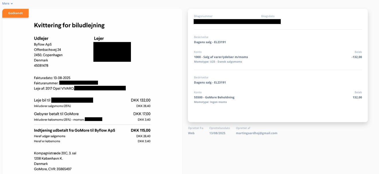 Lad Byflow håndtere download og bogføring af fakturaer for afsluttede GoMore-udlejninger - tilpasset din eksisterende bogføring.